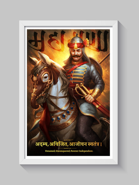 The undying spirit of Maharana Pratap who fought and lived the life on his own terms. This portrait is a tribute to Maharana Pratap and his spirit of never giving up. Featuring the battle-ready look of Maharana on his beloved horse Chetak. Mantra अदम्य,...- From ₹ 249