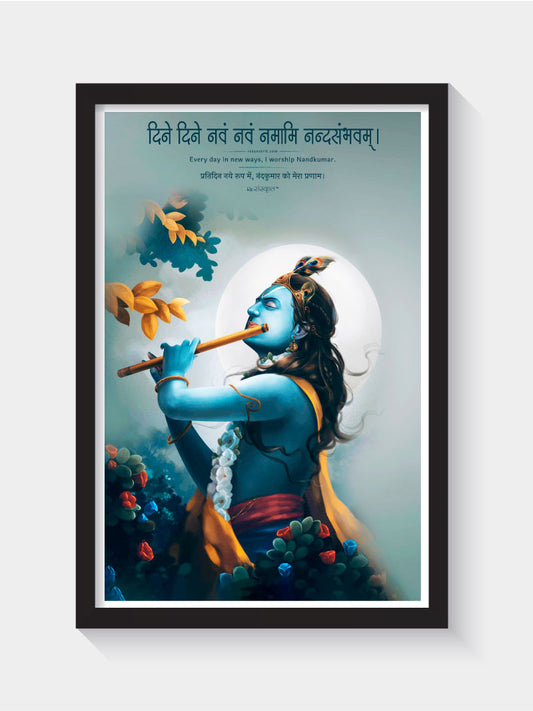 A beautiful frame of Shri Krishna lost in the art of playing the flute. The minimal text with an engaging design will bring a great flavor to your living room. Mantra दिने दिने नवं नवं नमामि नन्दसंभवम्। Transliteration: dine dine navaṃ navaṃ namāmi nandasaṃbhavam।...- From ₹ 599