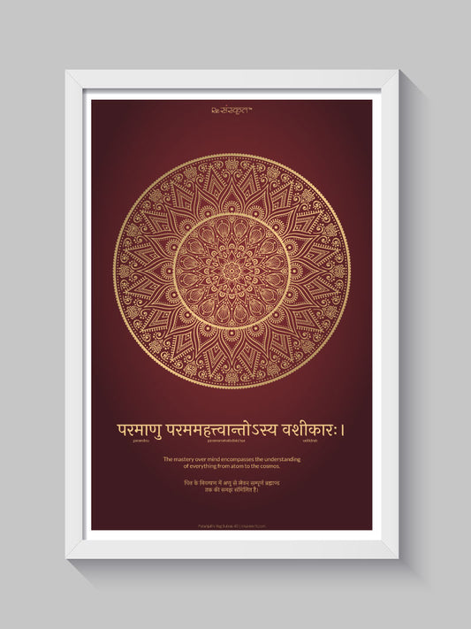 A verse from Patanjali Yoga Sutra, this Shloka sums up the eternal secret behind achieving anything in life. The minimalist and beautiful design of this frame will definitely add charm to your wall. Source: Patanjali Yoga Sutra 40 Mantra परमाणुपरममहत्त्वान्तोऽस्य वशीकारः। Transliteration: paramāṇuparamamahattvānto’sya vaśīkāraḥ।...- From ₹ 599