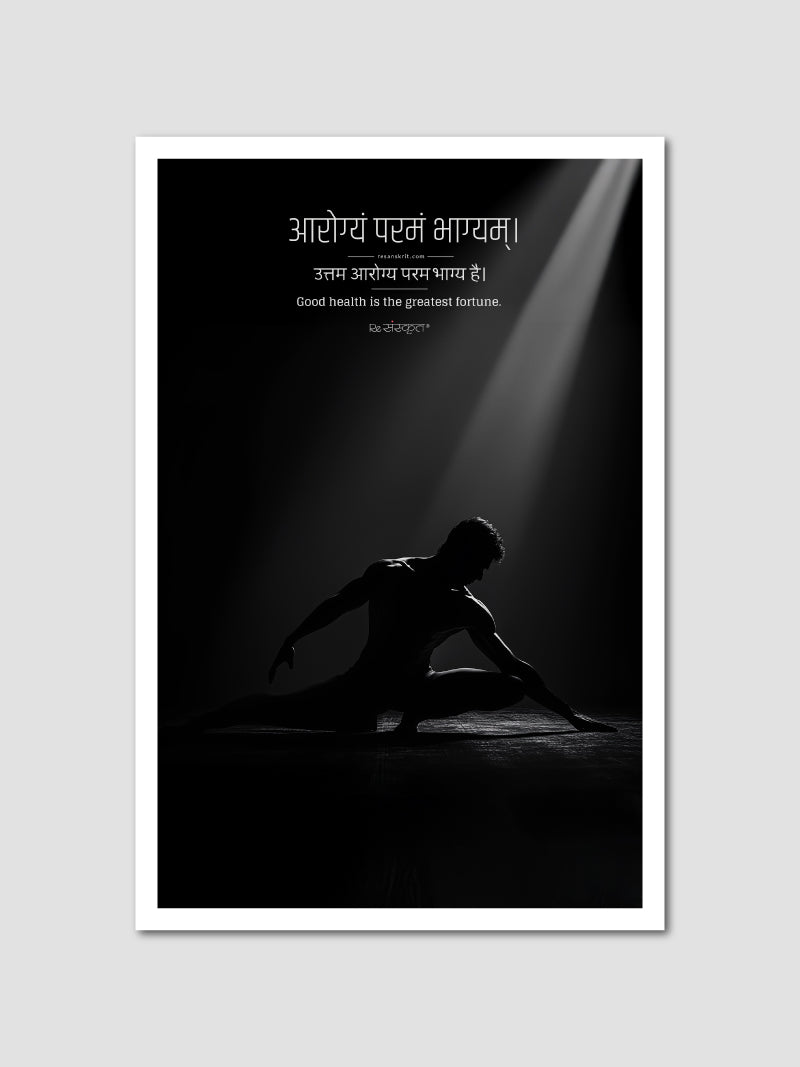 Aarogyam Paramam Bhaagyam – Sanskrit Health Quote Poster for Wellness Spaces