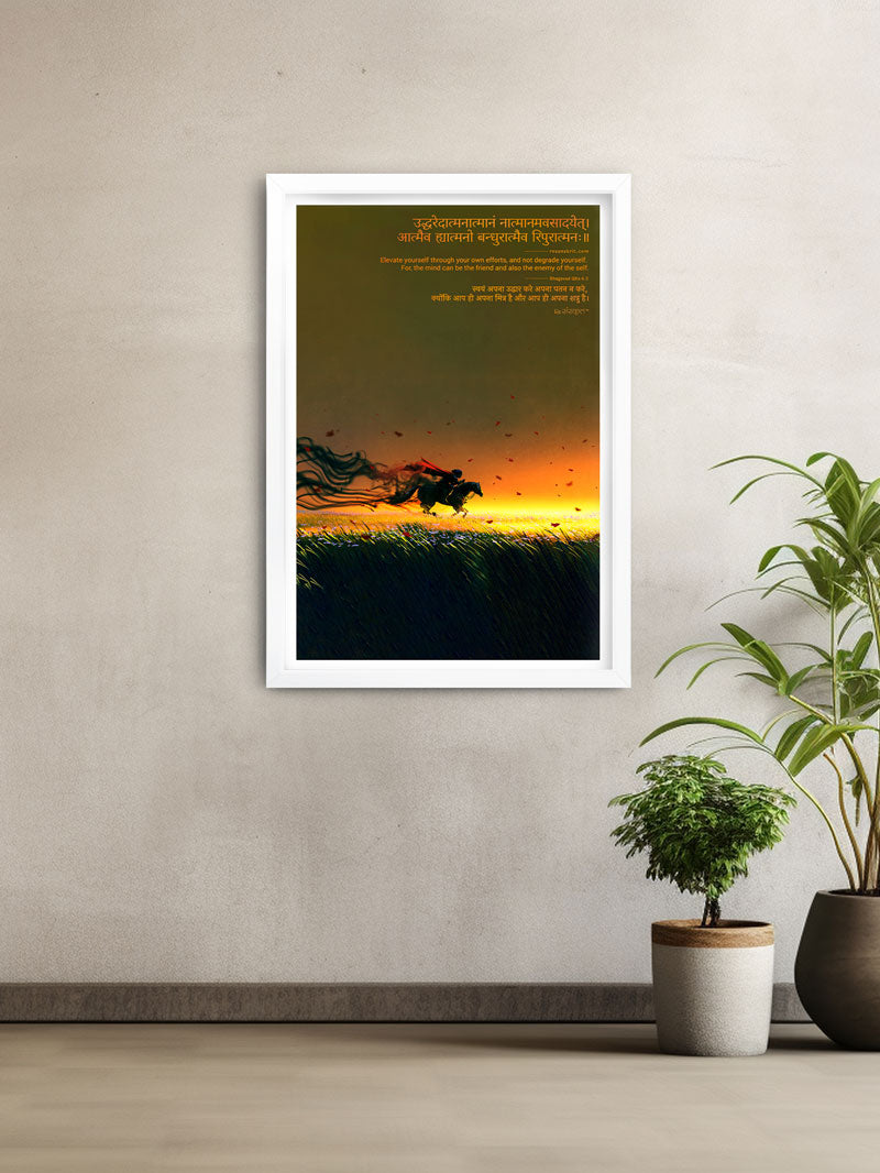 One of the most beautiful quotes from Bhagavad Gita (6.5). Let this poster be a constant reminder that your mind possesses the power to elevate as well as destroy yourself, use it wisely.