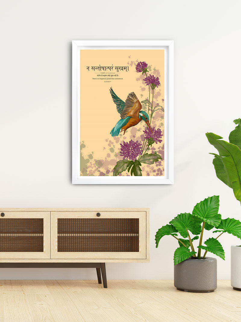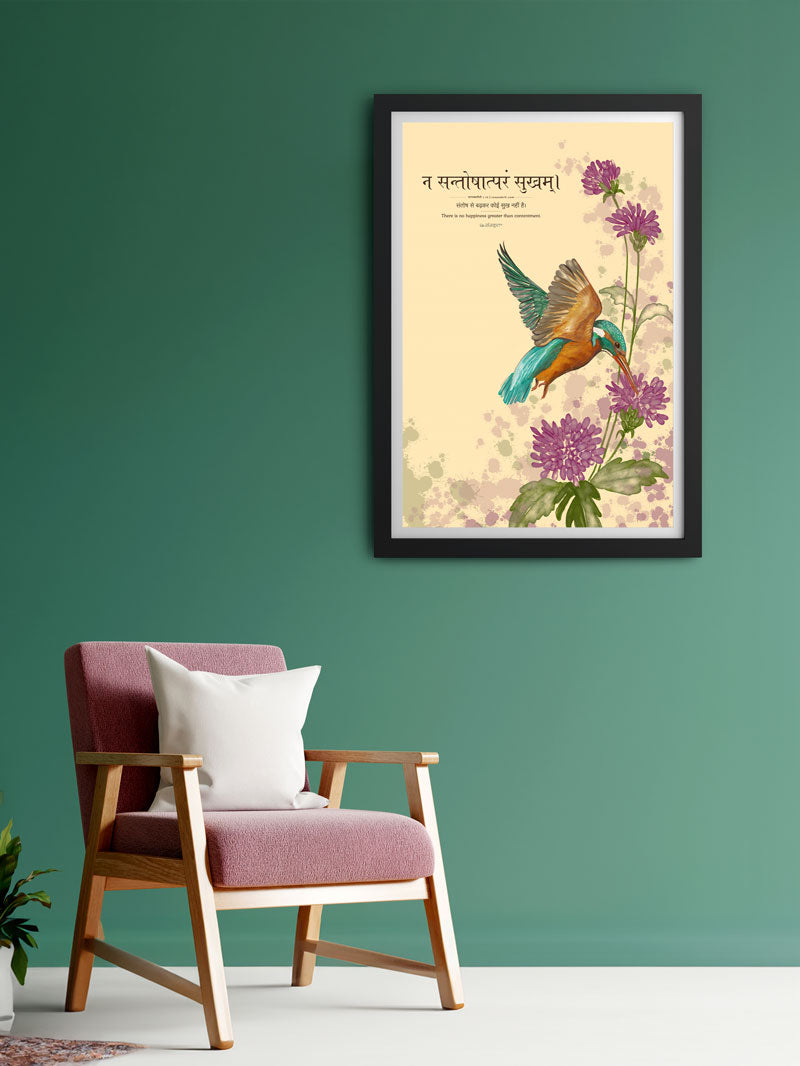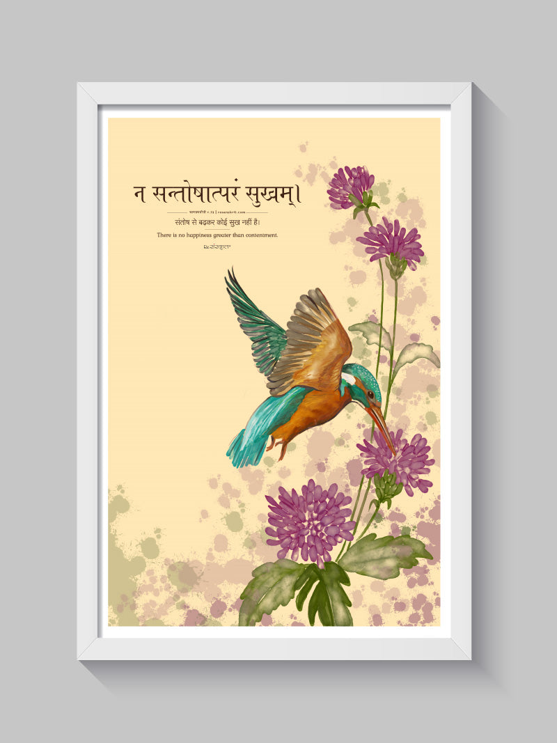 Chasing joy leaves shadows long, contentment's peace makes spirit strong. Isn't that true? A short and accurate quote from Chanakya Neeti. This beautiful artwork is developed by our artist Vaishnavi Naik.