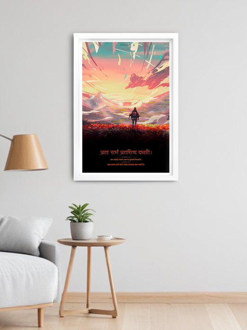 The key to owing the day. Rise early. Straight from Rigveda. This reminder will always work wonders. Install this frame in your bedroom.