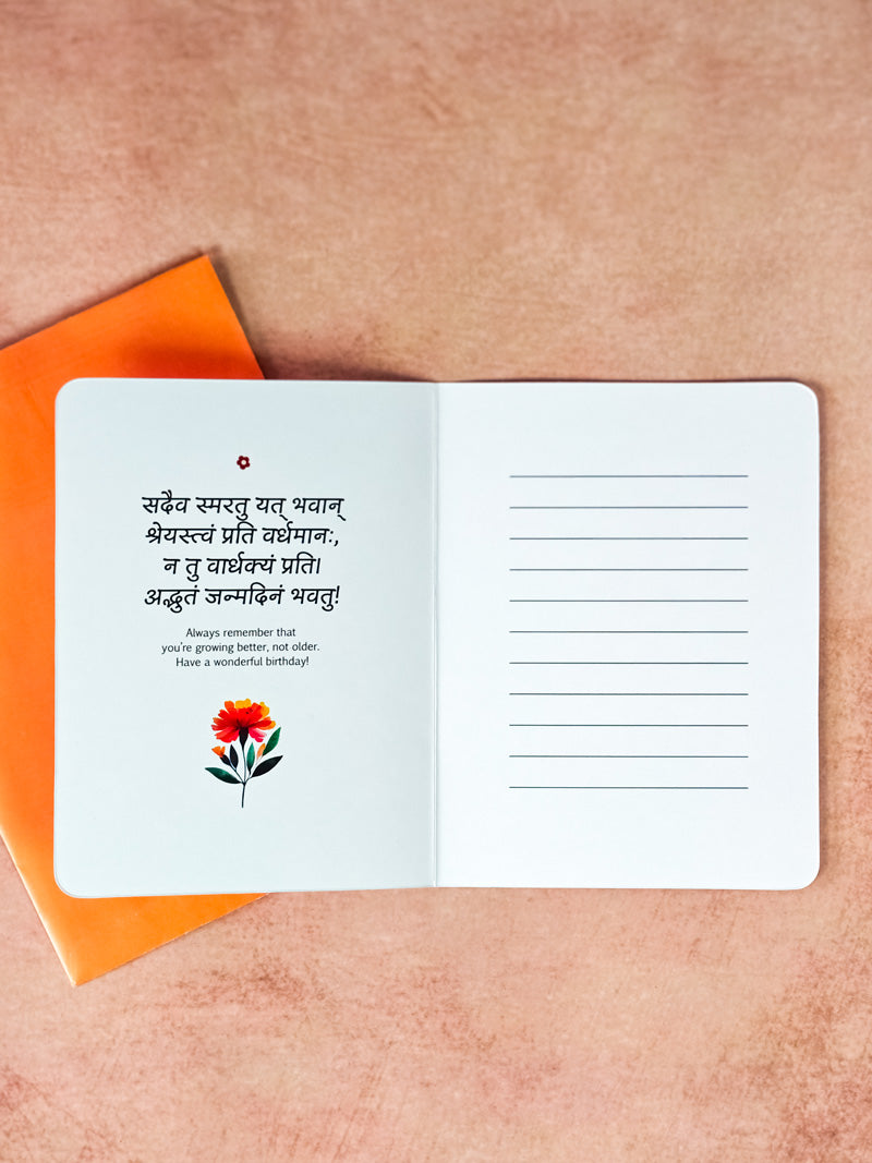 Sanskrit Birthday Greeting Card | Elegant Floral Artwork | Thoughtful Eco-Friendly Card with Envelope