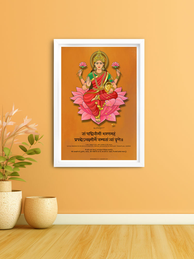 A beautiful frame of Goddess Lakshmi with a praise Mantra from Shreesuktam. The perfect frame for Lakshmi Poojan and as a gift this Diwali.