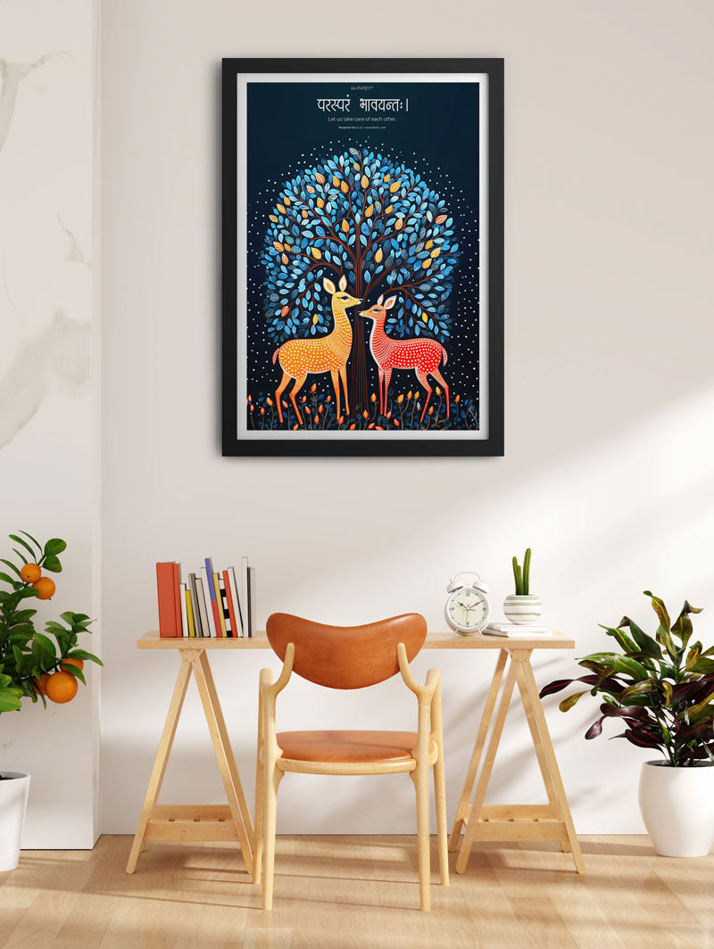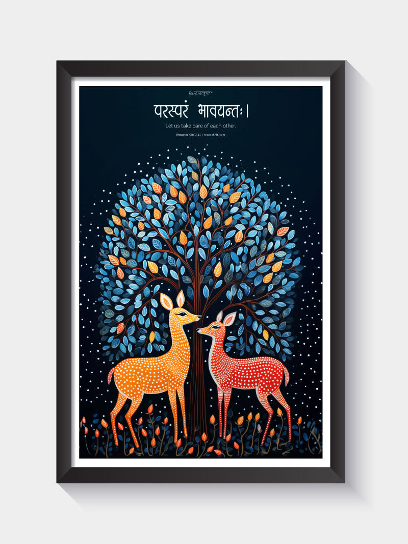 Gond Art Inspired - Bhagavad Gita 3.11 Wall Frame