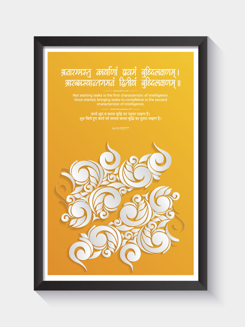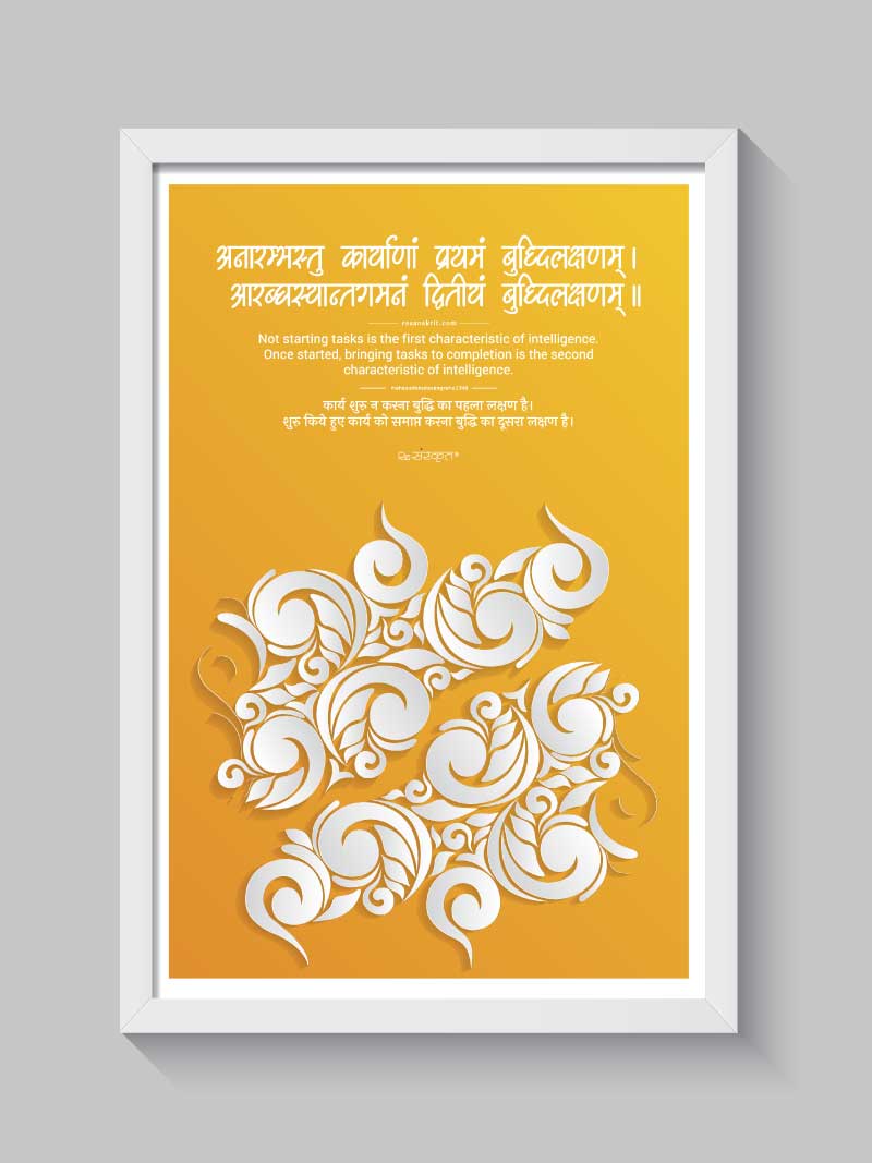 अनारम्भस्तु कार्याणां प्रथमं बुध्दिलक्षणम्। आरब्धस्यान्तगमनं द्वितीयं बुध्दिलक्षणम्॥