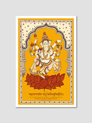 This exquisite Mahaganapati wall art brings the blessings of Shree Ganesha to your space. The artwork features a Sanskrit shloka invoking Ganapati's protection, perfect for creating a serene, spiritually uplifting atmosphere. Crafted with intricate detail, it's an ideal choice for homes and meditation spaces.