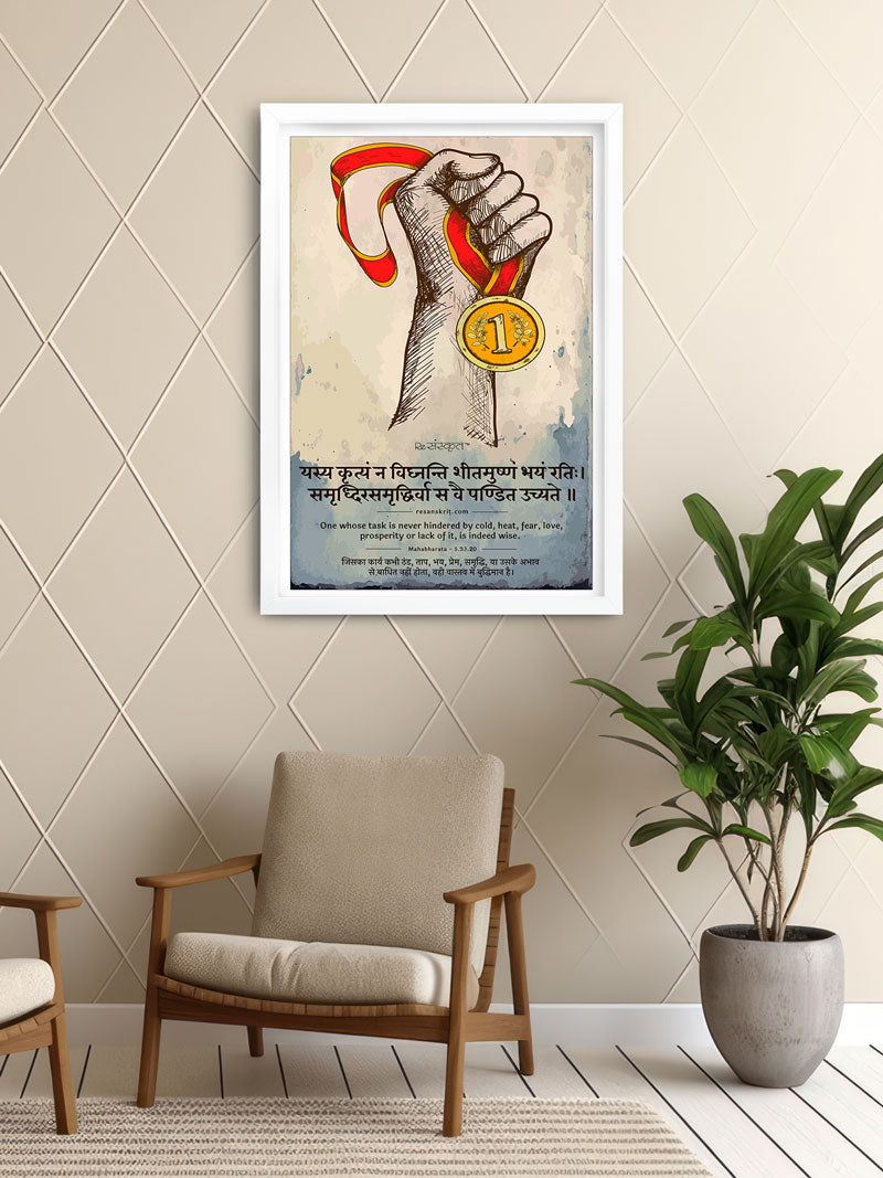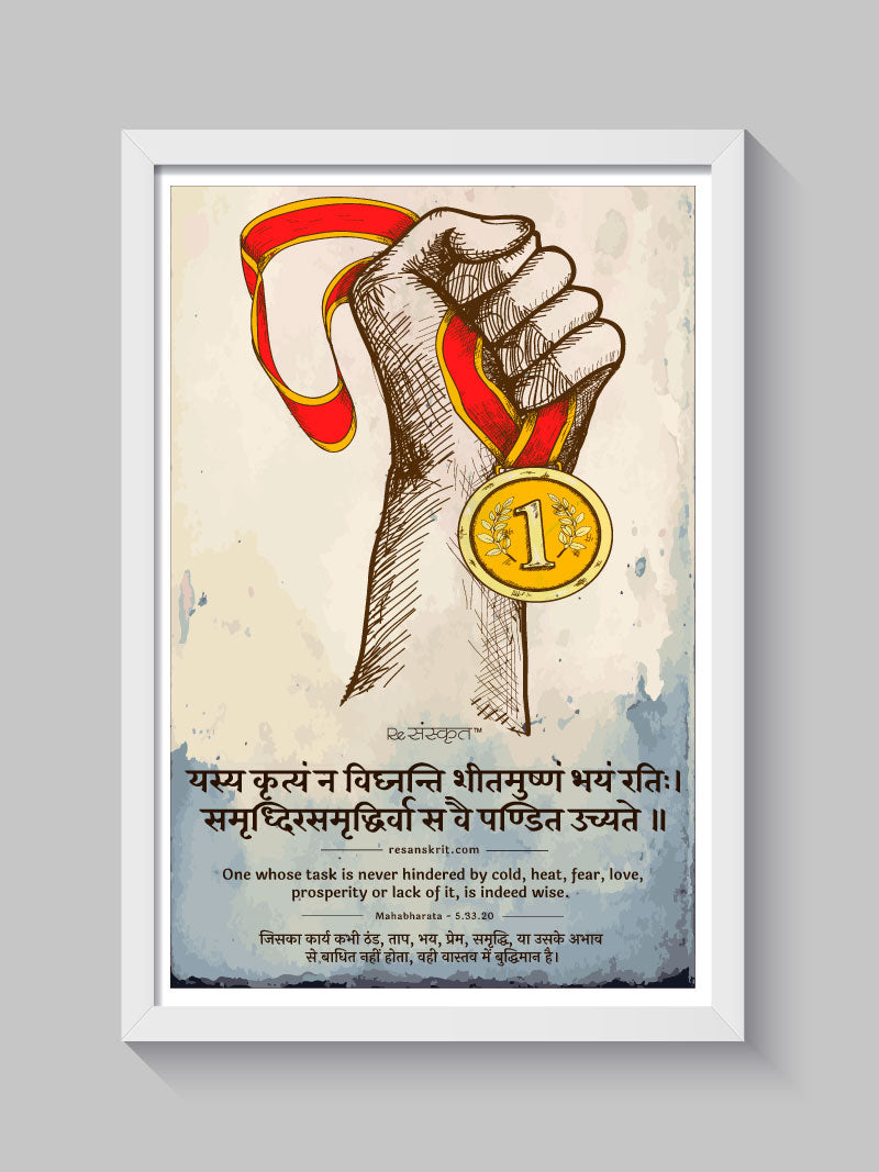 This Sanskrit quote from Mahabharata explains what it takes to be a champion. To be number 1. Hang this artwork in your study/office as a constant motivation.