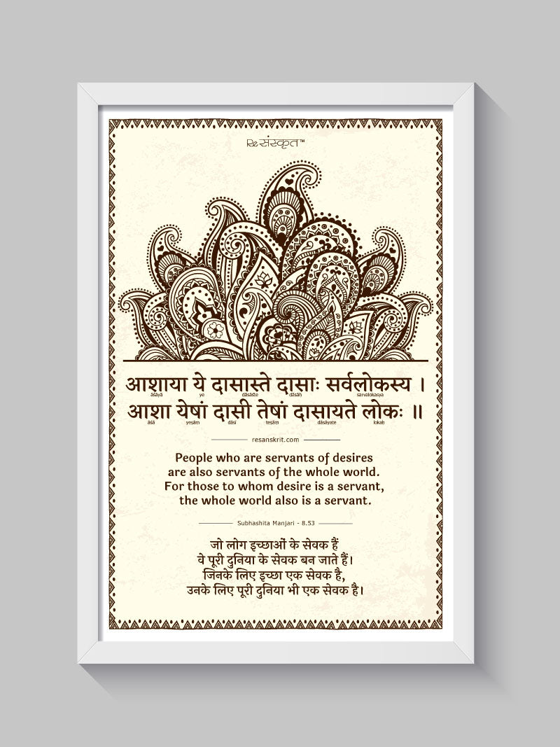 Sanskrit Quote on Desire Frame Frames - ReSanskrit