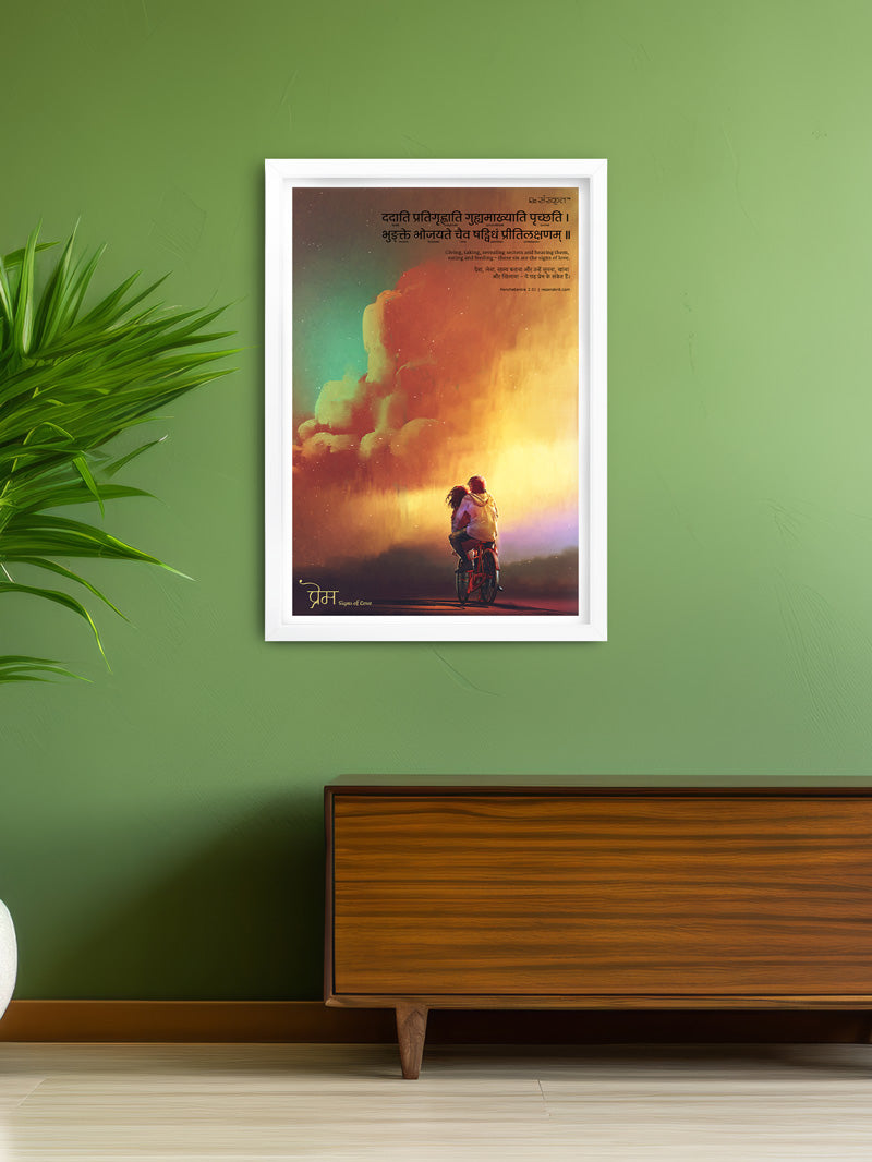 A beautiful wall frame showcasing a Sanskrit quote on love and how love develops from Panchatantra. A perfect gift for your loved one.