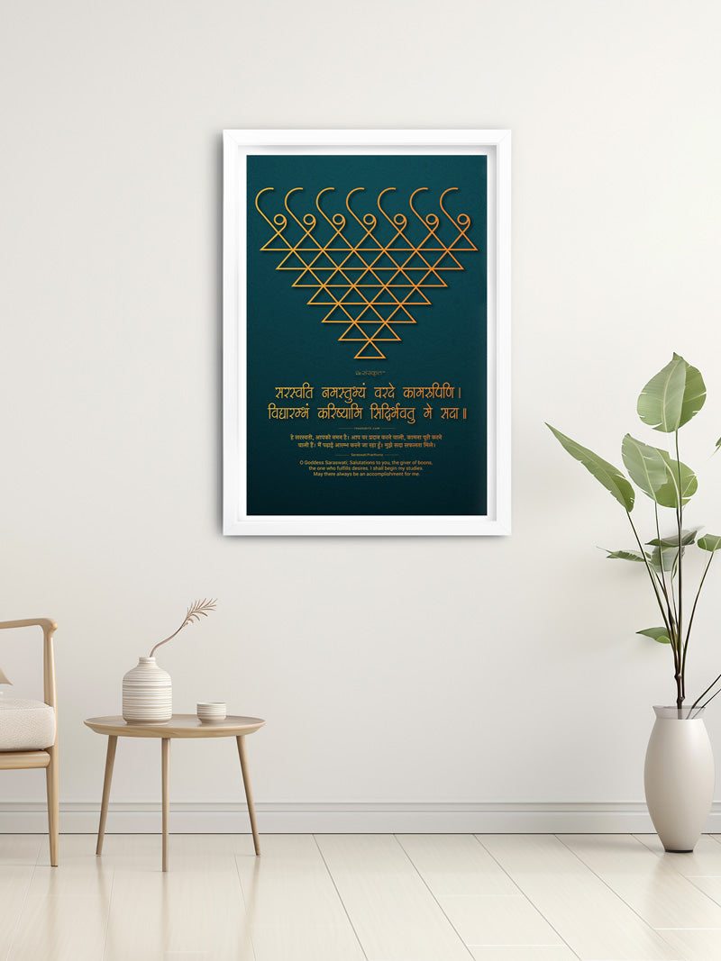 Saraswati Yantra (Saraswati Namastubhyam) Wall Photo Frame Frames - ReSanskrit