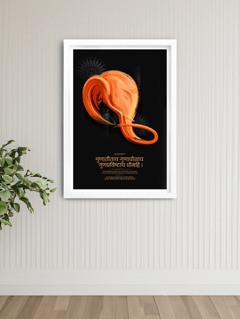 A beautiful portrait of Shri Ganesha with a verse from Ganapati Atharvashirsha. This frame can seriously bring spirituality and peace to your house.