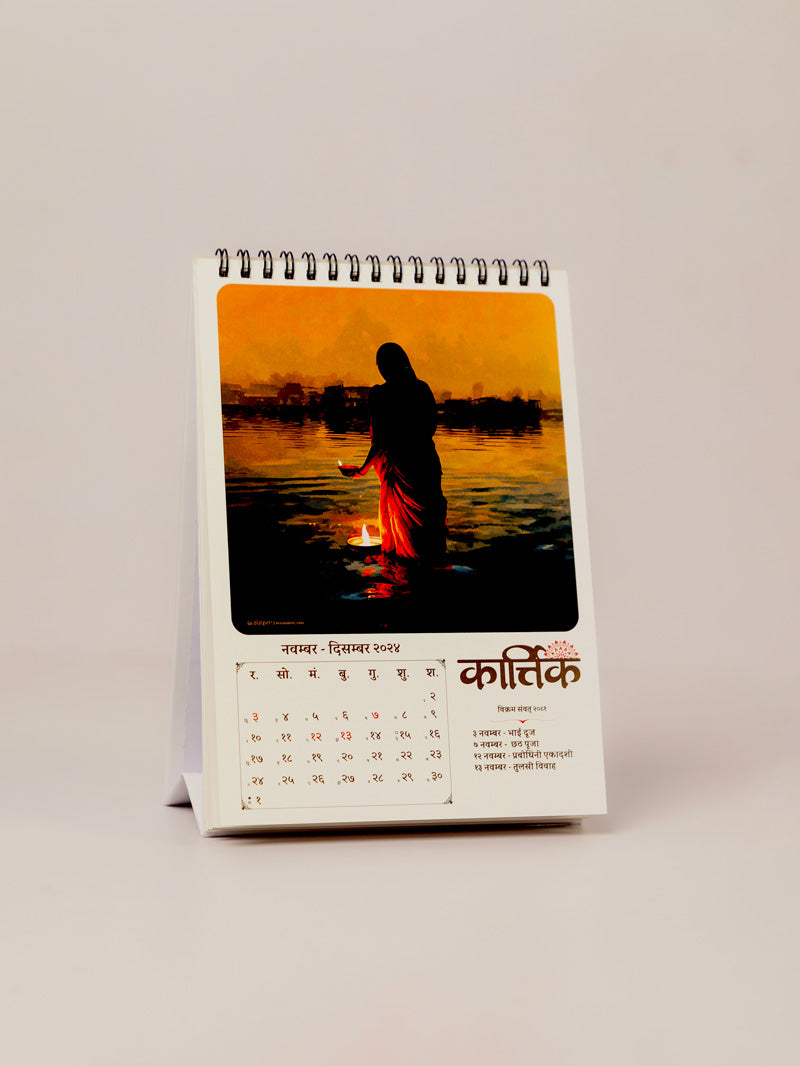 This calendar provides a two-in-one view! Each page displays the dates for a specific Hindu month alongside their corresponding Gregorian calendar dates. For instance, the month of Chaitra in the year 2081 Vikram Samvat runs from April 9th, 2024, to May 8th, 2024. So, the dates you see on the page will correspond to this Gregorian date range.