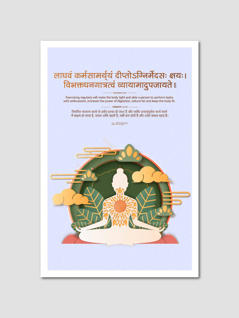 व्यायामात् लभते स्वास्थ्यं दीर्घायुष्यं बलं सुखम्। आरोग्यं परमं भाग्यं स्वास्थ्यं सर्वार्थसाधनम्॥